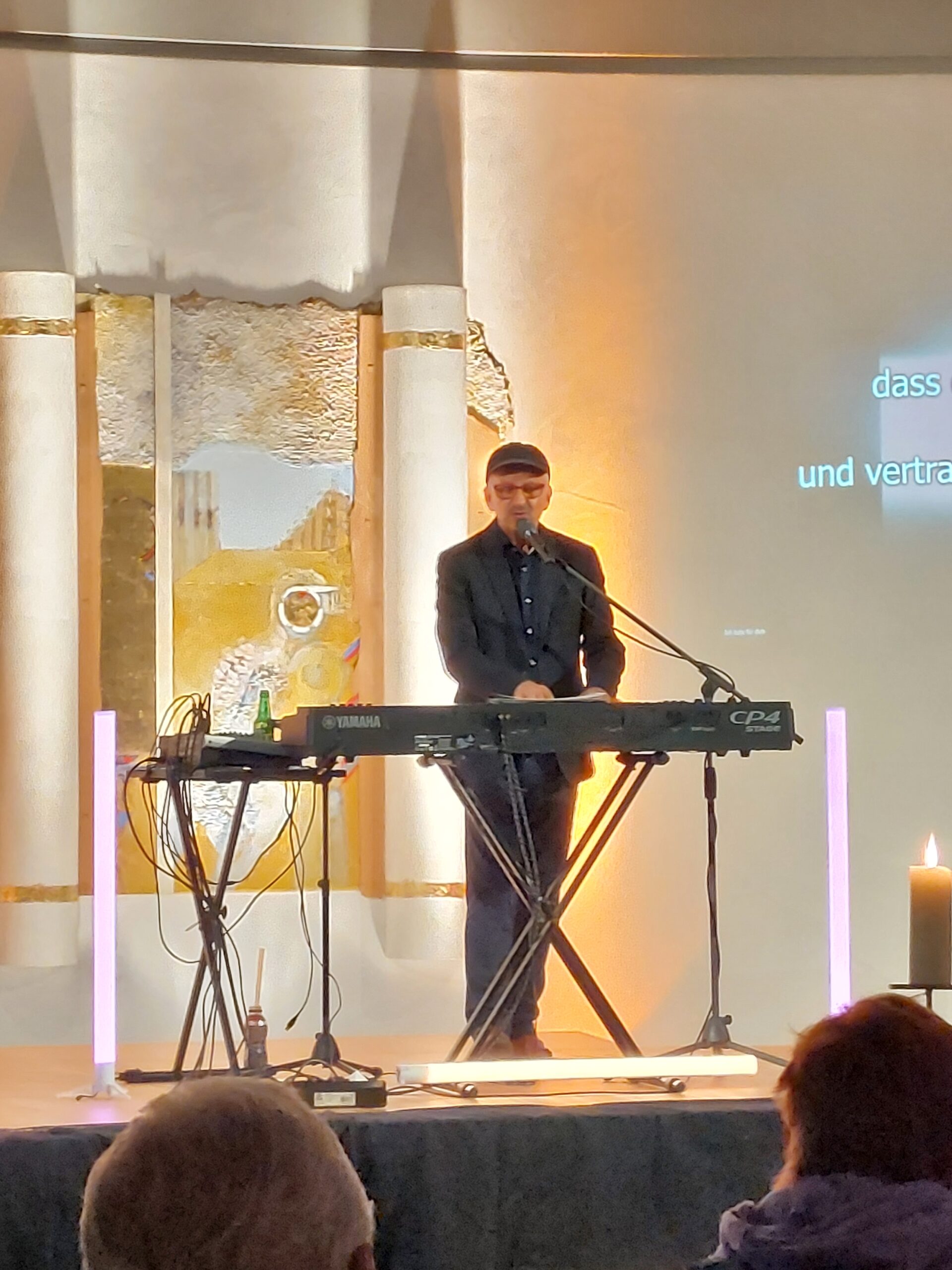 Gemeinde in Bildern 2025 Unser fotografisches Archiv Erntedankgottesdienst und Vorbereitungen05.10.2025 Konzert von Martin Pepper „flügelleicht“03.10.2025 Vernissage der Ausstellung „Moving life“ von Romuald Grondé07.09.2025 Das weiß doch jeder! – Komödie mit Nelli Geger12.07.2025 NKABOM – Wir gehören zusammen! Konzert mit dem Akoo Show Choir11.07.2025 Ökumenisches Sommerfest „Mit Gott über Mauern springen“29.06.2025 Post Ost Heuchelhof: Selbstporträt zwischen Steppe und Wald (mit A. Lochmann und J. Büshel)22.05.2025 Jubiläum 25 Jahre Gethsemanekirche18.05.2025 Ferienworkshop für Kinder: „Leben im All“14.04.-16.4.2025 Weltgebetstag der Frauen in St. Hedwig (Gastland: Cook Inseln)07.03.2025 Faschingsgottesdienst im Jakob-Riedinger-Haus16.02.2025 Lebendiges Gleichnis beim Bunten Heuchelhof08.02.2025 Kirchencafé19.01.2025 Gottesdienst mit Tauferinnerung und Taufe19.01.2025